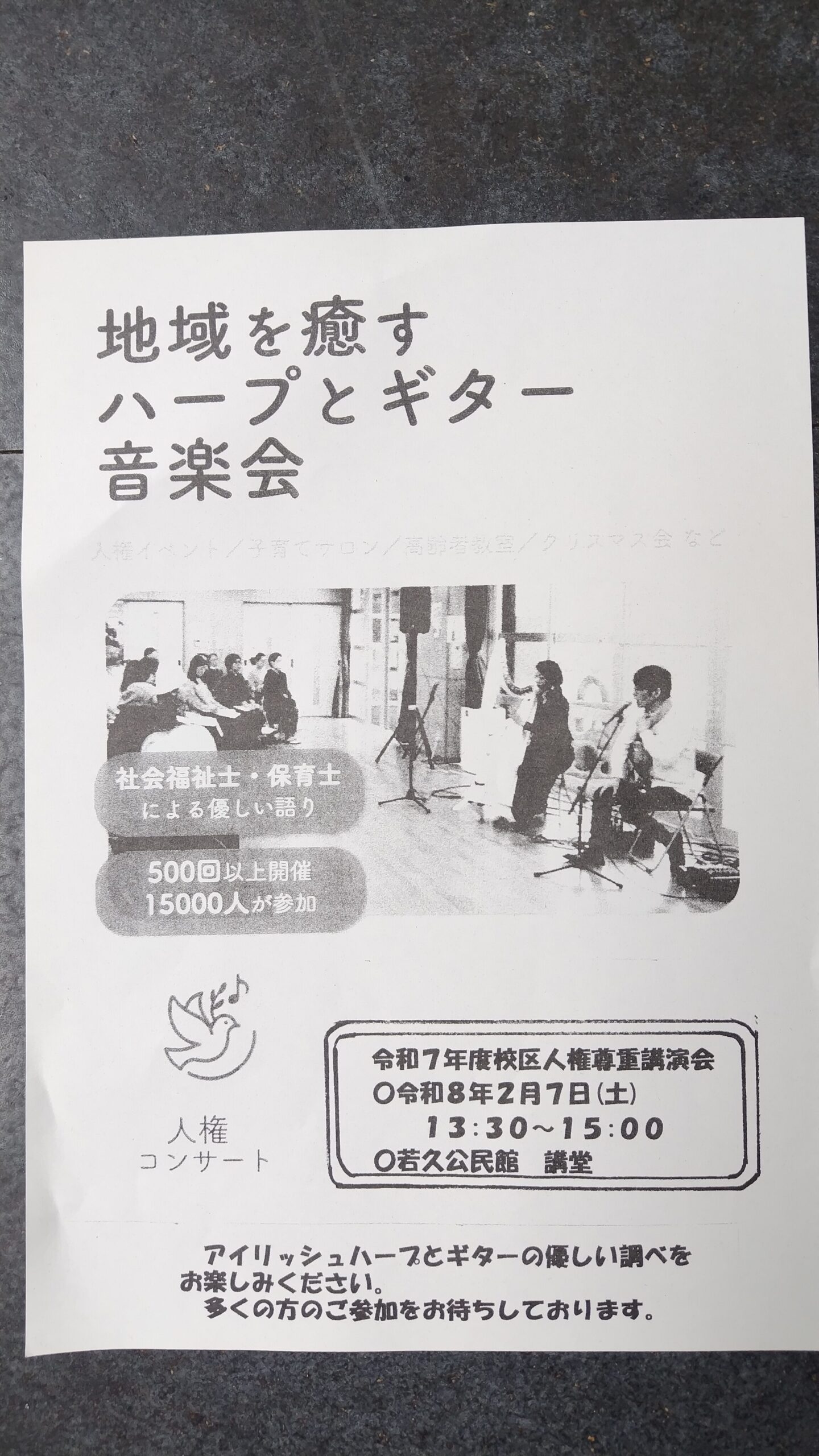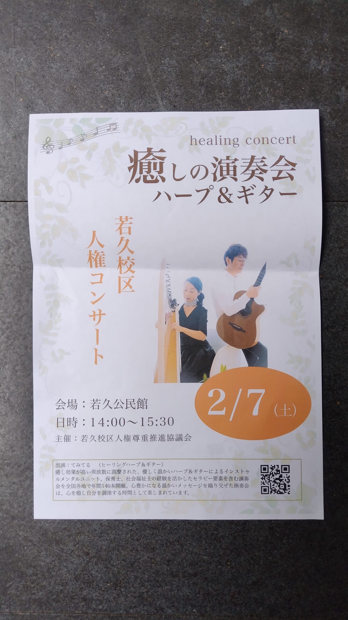 地域を癒すハープとギタ-音楽会