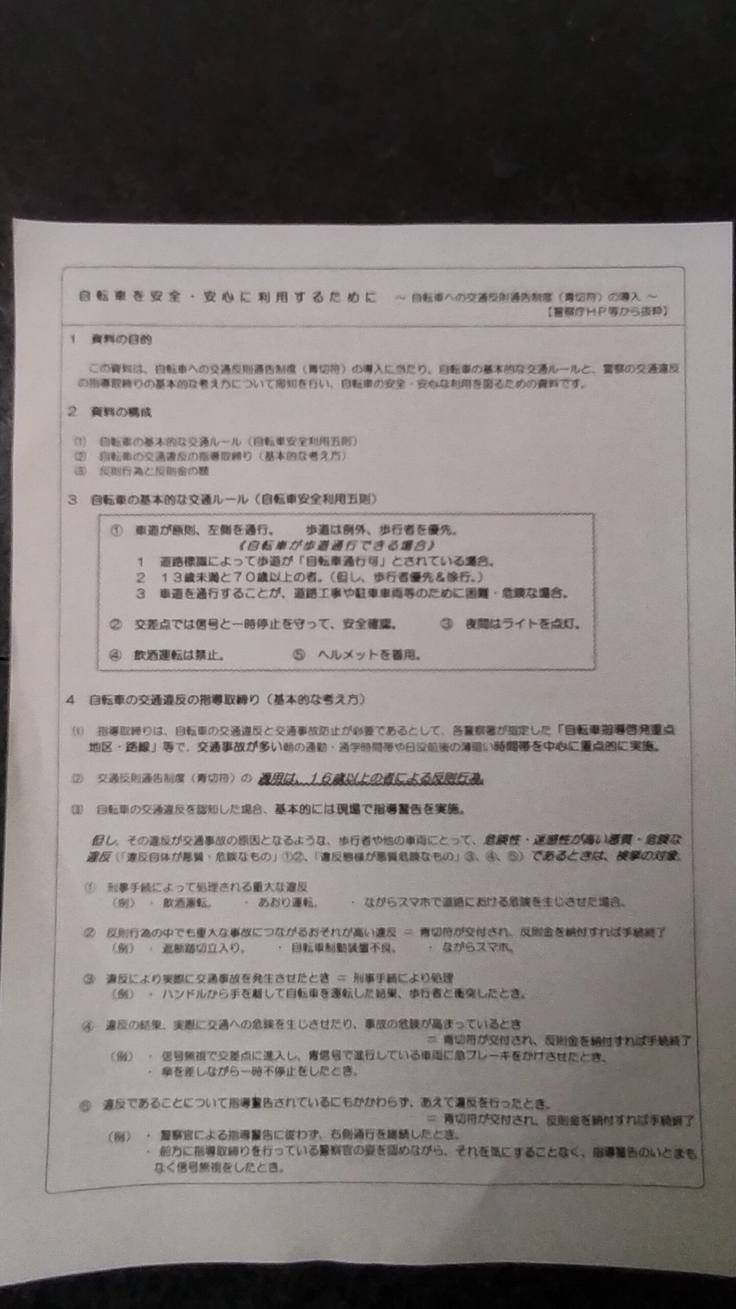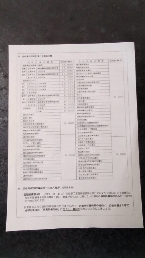 自転車の反則行為と反則金の額